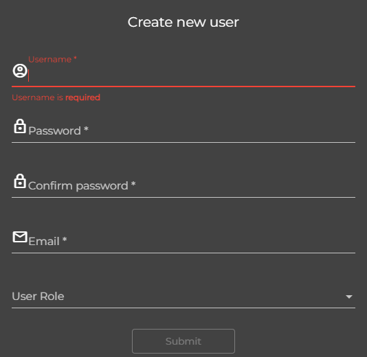Fill out all the form fields and click the “Submit” button to create a new user.