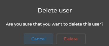 By clicking on the trash can icon (#3), labeled as “Delete user” a new modal window will be opened asking you to confirm the action.