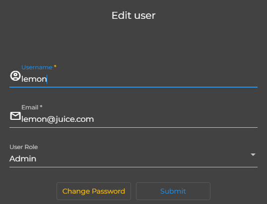You can change username, email, role and password from here. After you are ready click on the “Submit” button to apply the changes.