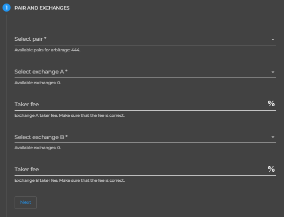 - Balance per trade - that is the amount which will be used for each arbitrage event found.