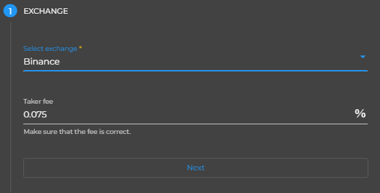 Here we have the most basic settings, choosing exchange and setting exchange fee percent.