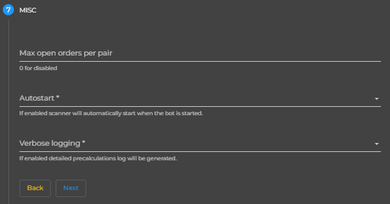 - Autostart - if enabled scanner will be automatically started on creation and when you start the bot next time.