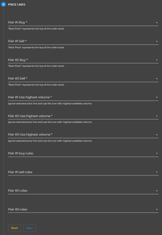 - Pair #3 Use highest volume - ignore the selected price line and use the one with the highest available volume.
